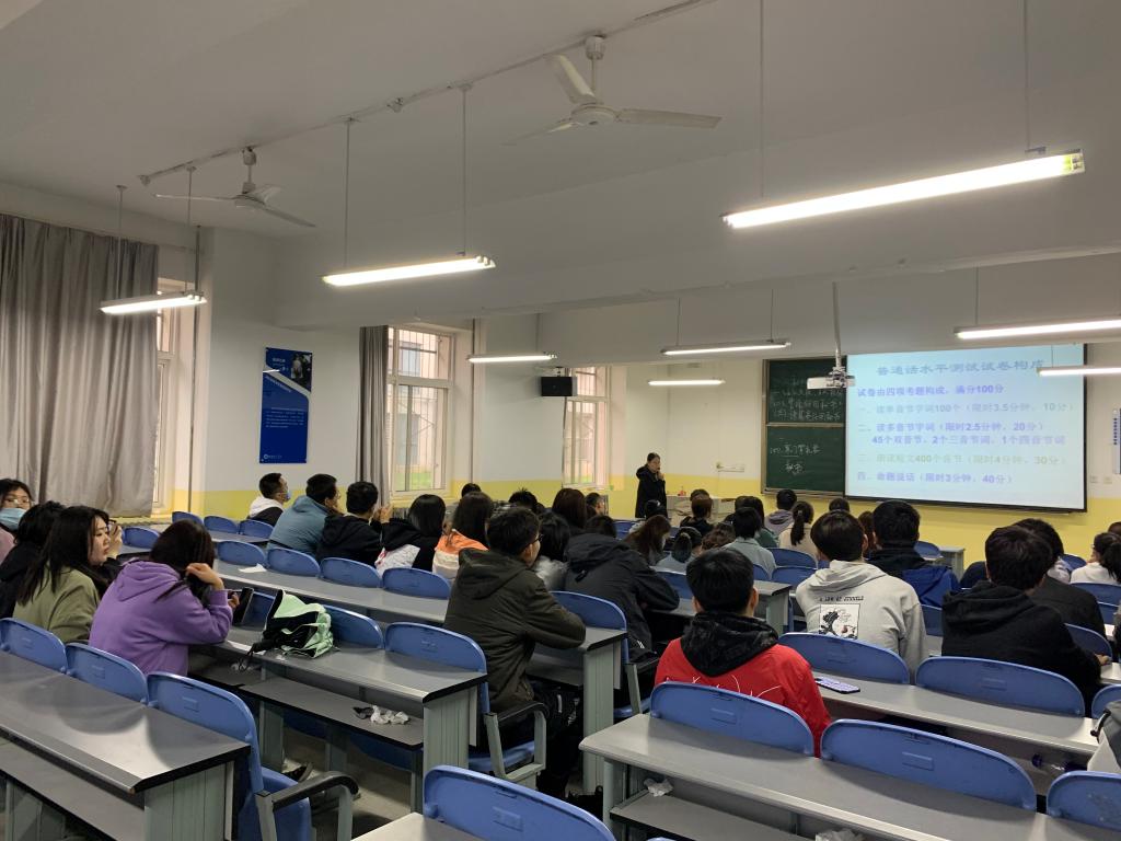 3月30日至4月2日,测试站分别在阎良校区、沣惠校区开展了普通话水平测试考前培训工作。此次培训由公司省级普通话测试员主讲,覆盖全校报考师生近千余人。培训主要分为测试内容和测试流程讲解两大方面,包括普通话知识学习、字音重难点辨析、测试流程解答、测试注意事项等。