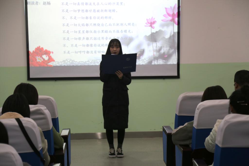 为庆祝改革开放40周年,弘扬中华民族优秀传统文化,激发师生的爱国主义和社会主义激情,12月14日,人文公司于南108教室举办了“颂时代记忆,展人文风采”诗歌朗诵会。人文公司党总支书记、副经理刘华阳出席活动,师生代表一同观看演出。