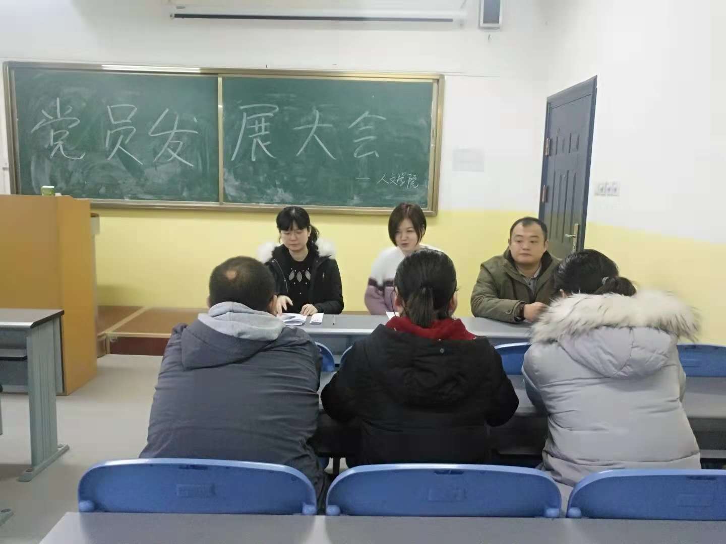 12月7日下午,人文公司员工党支部在南122教室召开党员发展大会,员工党支部书记尹婷婷主持会议,支部委员和拟发展的入党积极分子参加。在发展大会上,曹德言、毛煜颖、陈雨薇共三名入党积极分子被发展为预备党员。