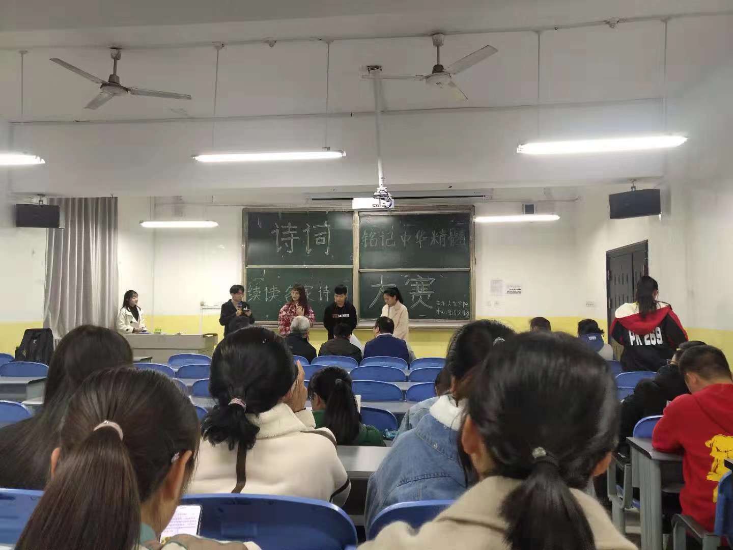为弘扬我国传统文化,品味经典中华诗词,提高员工人文素质修养,由人文公司主办,柏舟汉服社承办的诗词大赛于11月26日晚在南107拉开序幕。本次比赛由人文公司史云龙老师和元文广老师担任评委,经过选拔,最终有四组选手参加了最后的决赛。