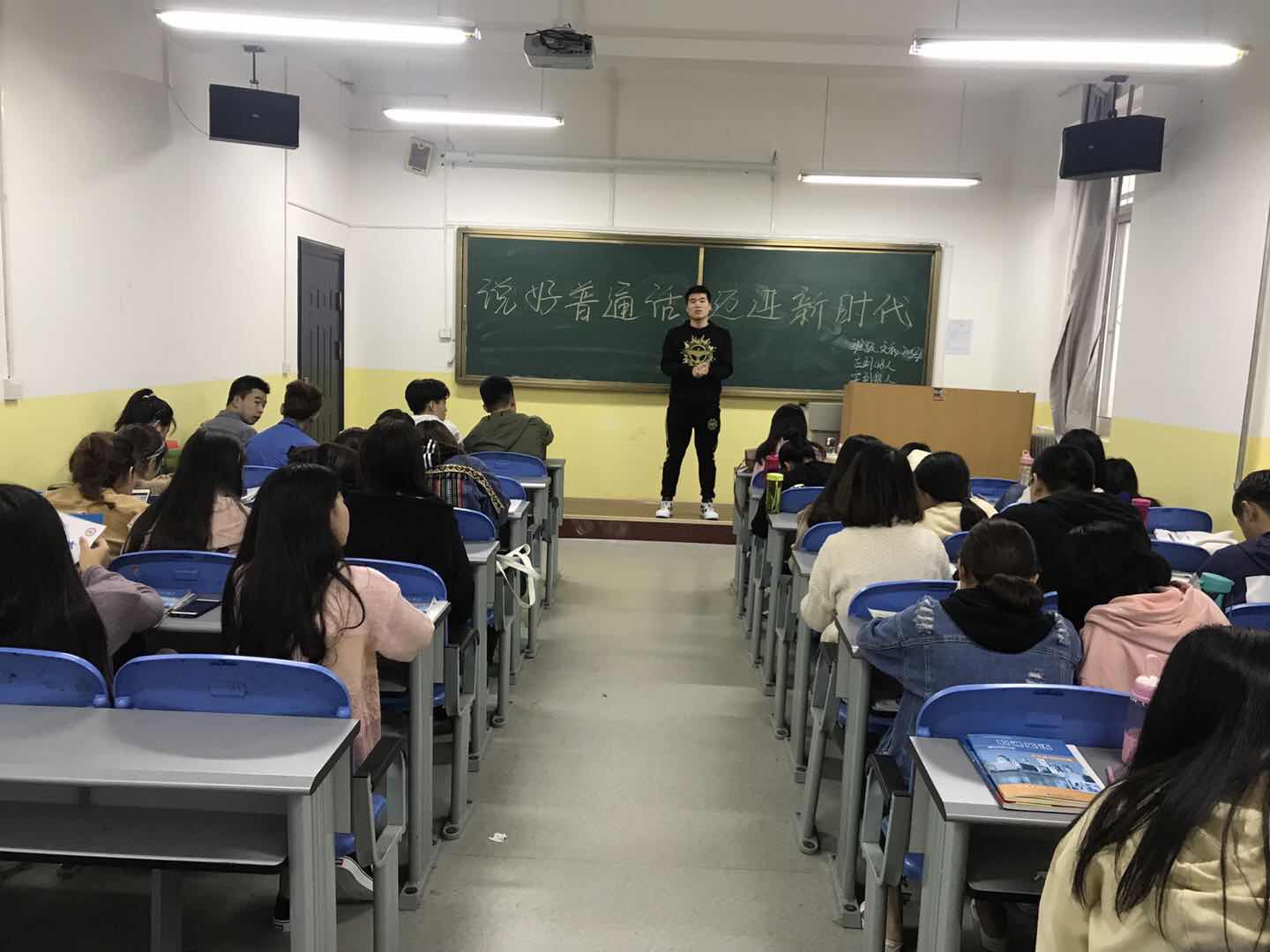 为进一步增强师生说好普通话,写好规范字的意识,提高师生通用语言文字的应用能力,营造浓厚的校园文化氛围。9月26日上午,在南楼109教室,人文公司开展“说好普通话,迈进新时代”主题班会,文秘2015班全体同学参加。