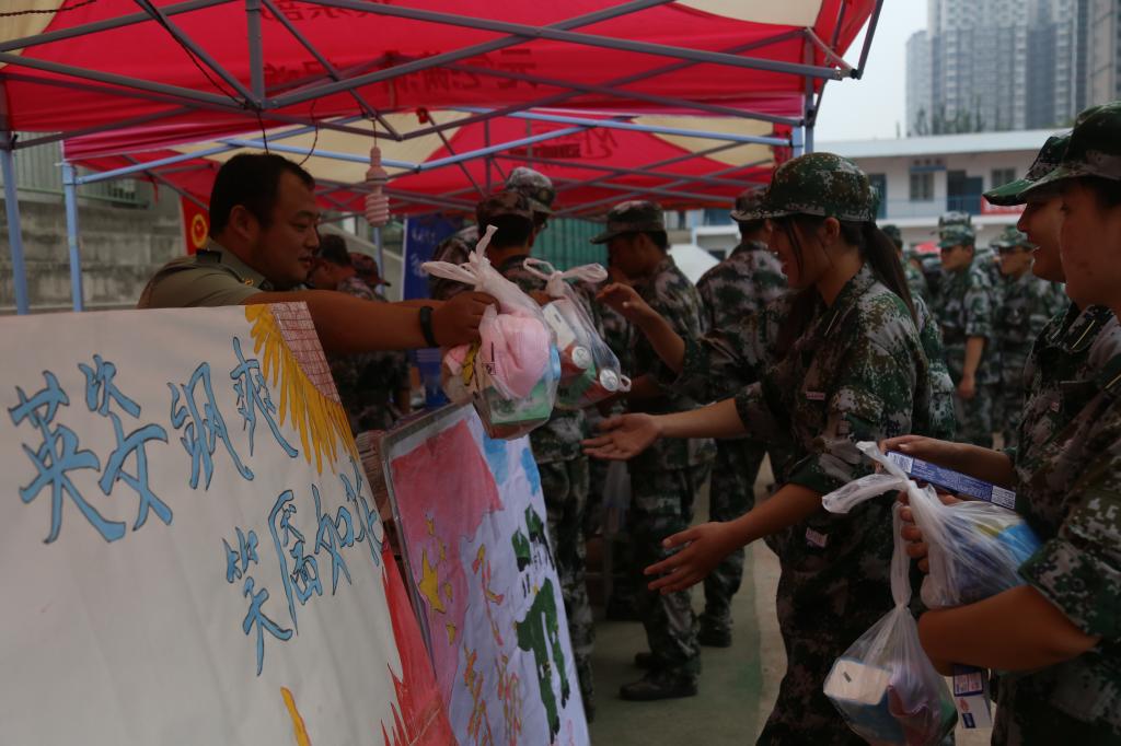 训练场上,参训新生正刻苦练习,他们动作规范整齐,步调一致,展现出人文学子们自强不息的精神风貌。刘华阳代表公司向教官表示慰问和感谢,同时也对同学们的军训成果给予了认可。她讲到,同学们前期的军训生活得以顺利展开,离不开教官认真细心的教导,离不开参训老师体贴入微的关怀。同时还为新生们介绍了人文公司经理高建群,并借用“丛林法则”的故事来告诉同学们要让自己逐渐成长壮大起来,找到适合自己的生活方式和发展道路。希望同学们能好好珍惜军训时光,圆满的完成军训任务,通过军训磨练意志,以军人的姿态投入到之后的学习中。刘华阳的一番话极大地鼓舞了同学们,大家纷纷表示一定会严格训练,积极准备,争取圆满完成军训任务。随后,文杰给全体同学分发慰问品。