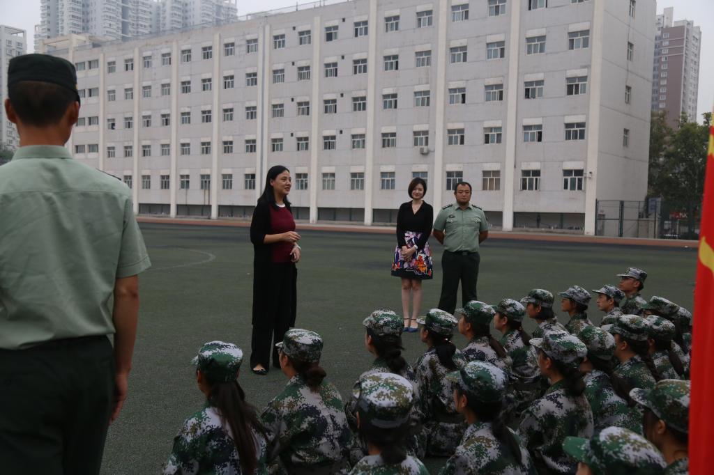 9月14日上午,人文公司党总支书记、副经理刘华阳,综合管理办公室主任尹婷婷以及辅导员文杰来到操场慰问正在训练的新生。