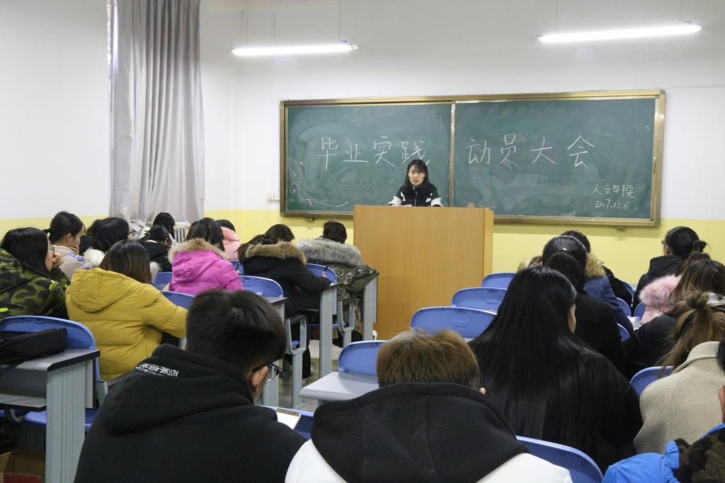 12月6日,人文公司于南楼128教室召开毕业实践动员大会。本次大会由教研室主任徐蕾主持,毕业班全体同学参加。
