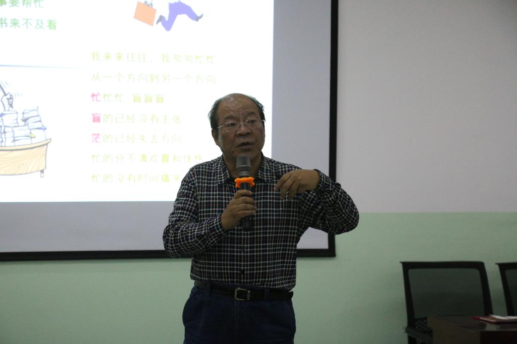 郭教授首先以注意力测试为导入,告诉同学们专注课堂学习、提高效率的重要性。之后,他结合日常生活实例,重点阐述了时间管理的概念以及如何进行时间分析。在讲述时间规划的四大原则时,郭教授告诫同学们要认清事情的轻重缓急,克服拖拉的不良习惯,并以名人和普通人日常时间安排对比为例,向同学们传达了节约时间、省略重复工作的重要理念。讲座中,他具体阐释了“30秒电梯理论”、“二八理论”、“34枚金币时间管理法”、“桌面整洁法”等10个时间管理的基本原则,加深了同学们对正确管理时间的认识。现场气氛热烈,在同学们热烈的掌声中,讲座最终取得圆满成功。