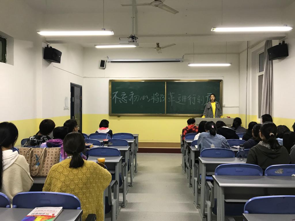 10月18日晚7点,人文公司文秘1913班于南楼209教室开展了“不忘初心,将改革进行到底”团日活动,会议由团支书孟思冬主持,全体同学参加会议。