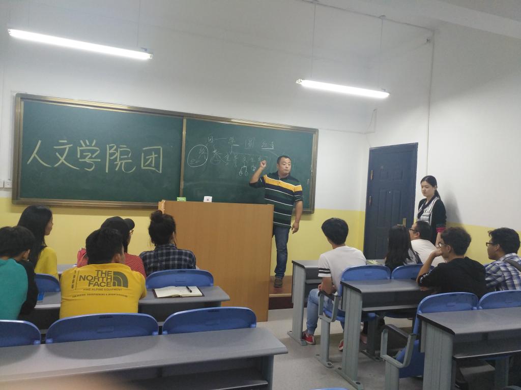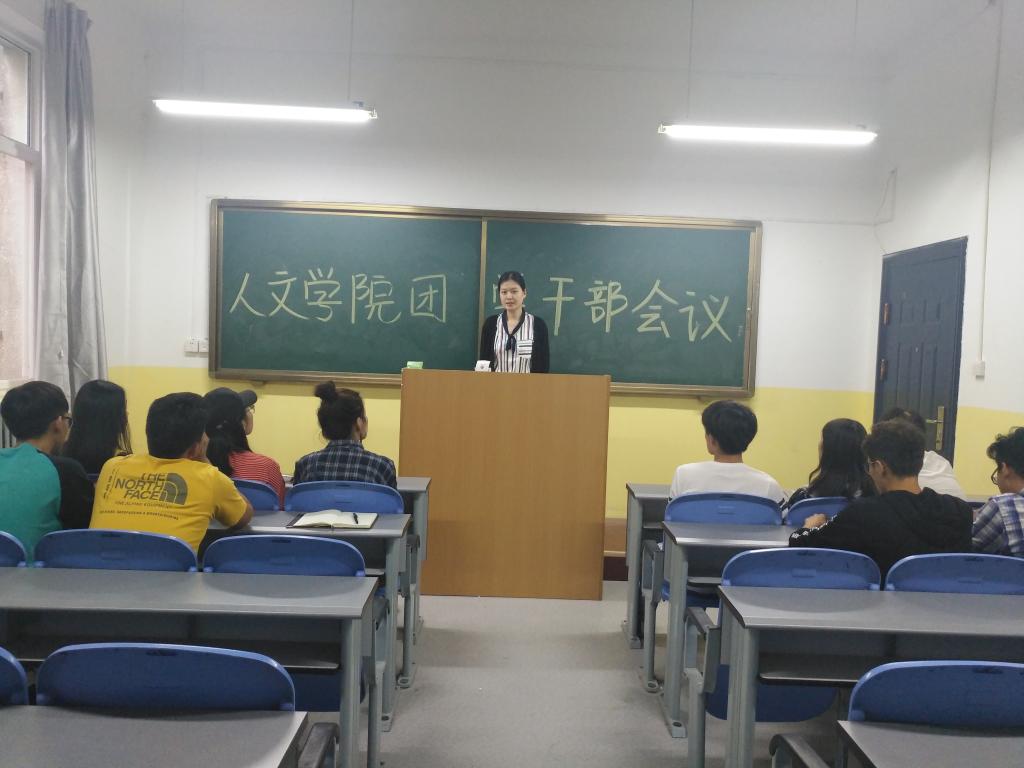 9月30日,人文公司于南楼128教室召开新学期团学干部工作会议,人文公司综合办公室主任尹婷婷、辅导员文杰及全体员工干部参加会议。