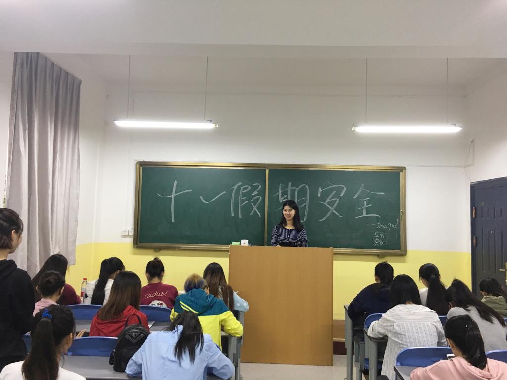 首先王维从宿舍安全、防盗防骗、人身财产安全、出行安全等方面列举了安全事故的的危险性,根据存在的安全问题提出了解决的方案以及防范的措施。在这过程中同学们认真听讲,并且举手回答发表了自己的看法与意见。最后王维总结一定要处处小心、注意安全,并祝大家度过一个快乐圆满的十一假期。