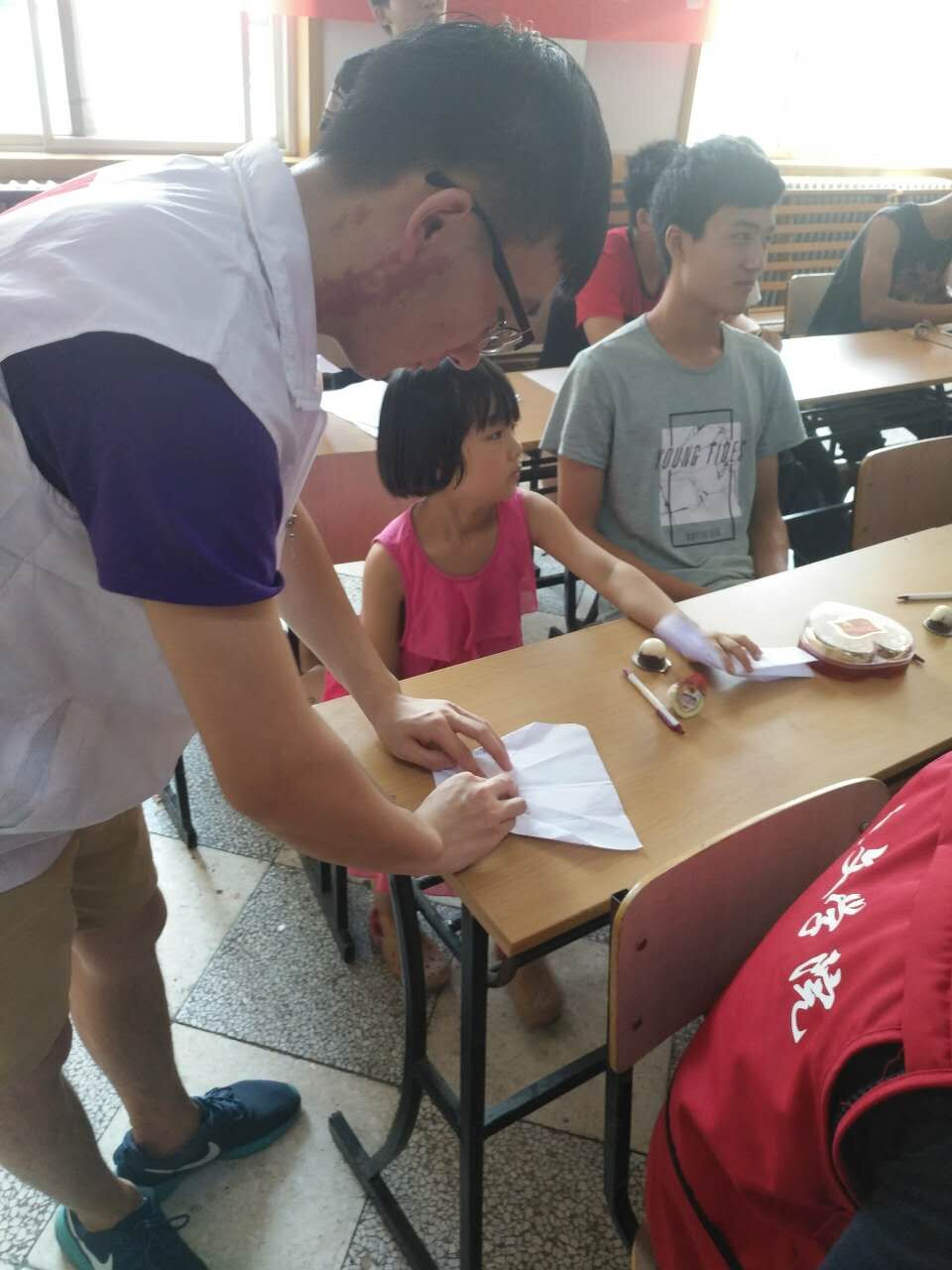 随后,社会实践队与儿童村的小朋友们进行了一次“让飞机搭载梦想,迎风启航”的活动,志愿者们帮助小朋友们折纸飞机,并让他们为自己的飞机起一个名字,然后把自己的梦想写在上面。志愿者带小朋友们一起喊出了365英国上市公司的校训“德能日新”,并且尽力让纸飞机飞的更高更远。每个纸飞机都承载着孩子们的梦想与希望,看着各式各样的纸飞机从每位小朋友们的手中飞出去,大家都开心的笑了起来。