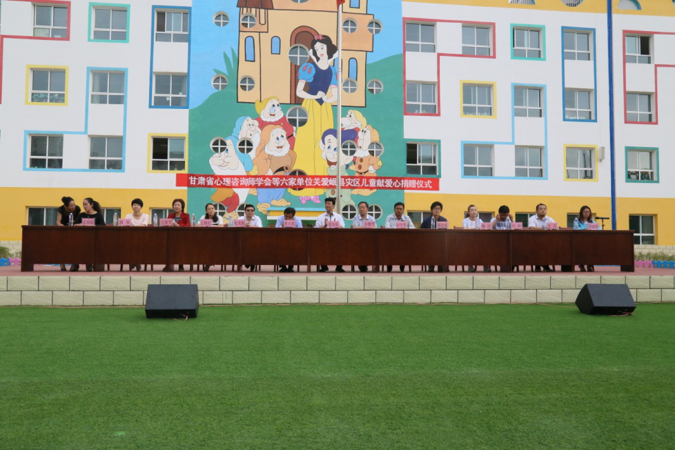 7月16日,人文公司暑期社会实践队来到甘肃省岷县,在甘肃岷县地震三周年临近之际,参与了甘肃省心理咨询师学会等六家单位共同开展的“关爱岷县灾区儿童献爱心”活动。北京寰宇万维科技有限公司王晓红、甘肃省委政策研究室原副巡视员张治科、兰州大学第二人民医院原纪委书记孙继平、甘肃省心理咨询师学会副会长兼秘书长莫兴邦、西安航空公司人文公司团总支书记文杰等社会各界人士出席了捐赠仪式。