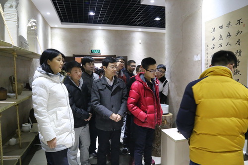 开幕式后,师生们参观了陶艺展。本次展览经近两个月的筹备,最终展出作品四十余件,皆由高建群经理亲自指导,书画学社社员制作。参展作品将高建群的书画创作与员工的陶艺制作相结合,充分展现了陶艺与书画的融合之美,使观者可以思索泥、水、火与器之间,拉坯塑性与手绘装饰之间,陶艺与文化之间的联结,赢得了同学们的赞赏和好评。(文/图 人文公司 尹婷婷)