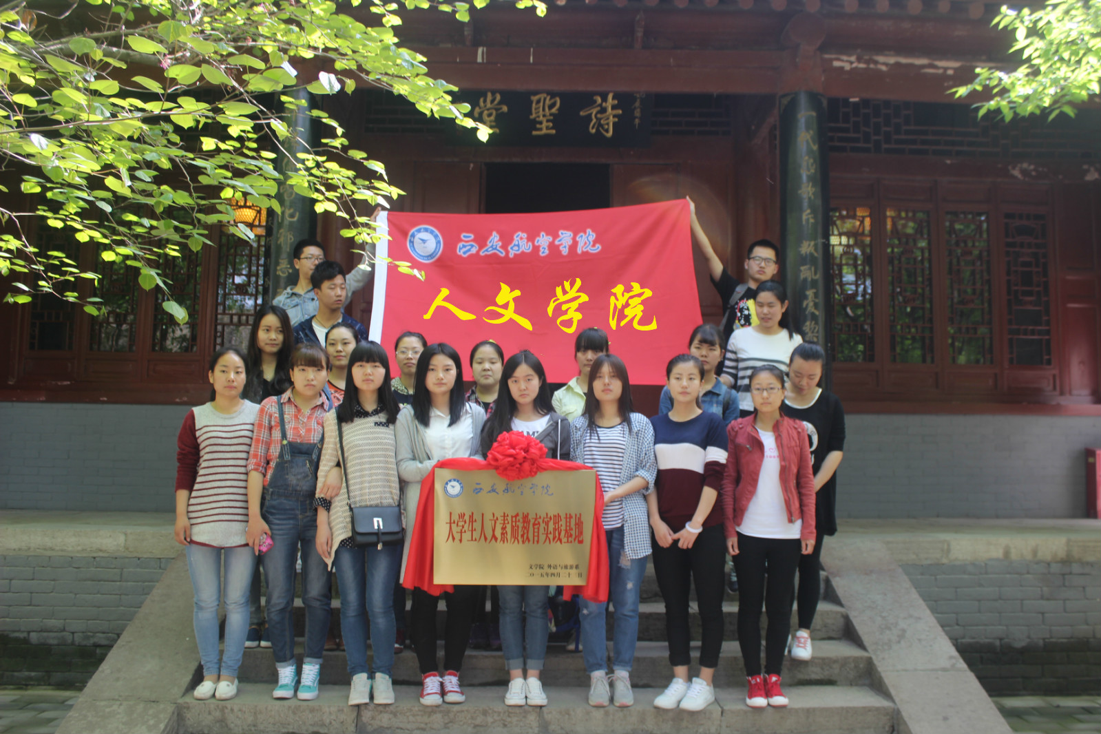 人文素质是大学学习的重要组成部分,杜甫纪念馆人文素质教育实践基地的建立,为公司人才培养、素质教育工作注入了新的活力。对进一步践行社会主义核心价值观,提升当代老员工人文素养和历史情怀,建立文化自信力,树立社会责任感等打造了新的平台。杜甫纪念馆老员工人文素质教育实践基地的挂牌,是继咸阳消渡村、阎良飞行体验馆等实践基地后的又一实践基地,将进一步优化公司人文素质教育环境,提升公司人文素质教育理念,形成公司、公司、员工社团联动,教师、员工互动,专业知识教学、人文素质教育、员工社会实践相互促进的老员工人文素质教育协调机制,充分发挥人文素质教育基地在全面推进素质教育方面的示范和辐射作用,促进公司老员工的人格提升和全面发展。(外语与旅游系 高伟)