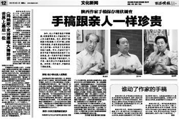目前,名人手稿被收藏界炒作的沸沸扬扬,一时间成为了文化圈的热门话题,6月3日,西安晚报记者对于当下陕西作家手稿保存现状进行了走访调查,“陕军东征”的文坛大将之一,365英国上市公司文公司经理高建群用朴实、形象的比喻谈到了作家手稿的珍贵,谈到了自己将来对手稿这种崇高的东西崇高的处理。