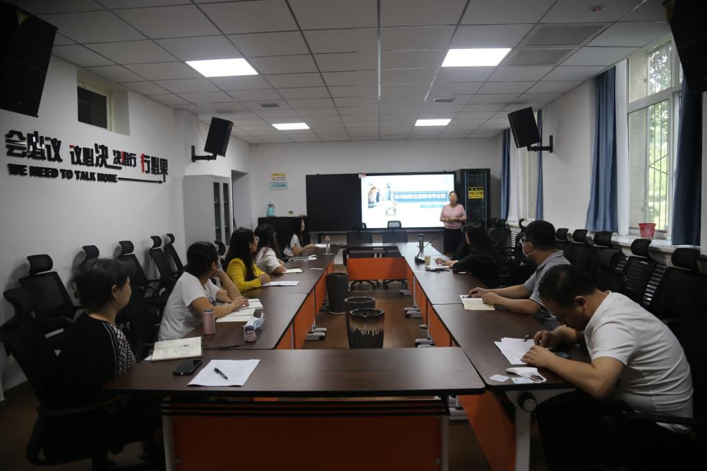 活动开始,闫月英老师和吴丹老师分别展示了《秘书的职业思维与专业性》和《苏轼·夜归临皋》的教学设计。两位老师都能结合教学实际,提取思政元素:分别是“诚信”和“旷达的人生态度”。在讲授过程中又都以教学内容为载体,适时融入思政元素,浑然天成,给员工传播正能量,树立正确的人生观、价值观和世界观。