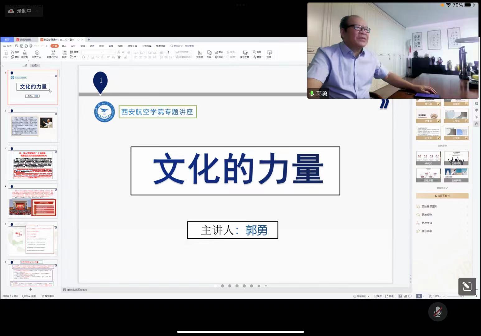 12月8日下午,由人文公司主办的“文化的力量”专题讲座以腾讯会议的方式举行。讲座特邀中国军工文化首席专家、公司客座教授郭勇担任主讲,全校二百余名教师参加。