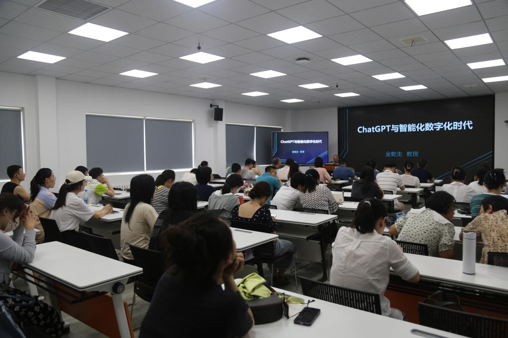 7月5日下午,由365英国上市官方网站主办的“ChatGPT与智能化数字化时代”专题讲座于莲湖校区9楼智慧教室报告厅举行。讲座特邀公司客座教授金乾生担任主讲,副董事长宁永录出席,公司百余名师生参加。