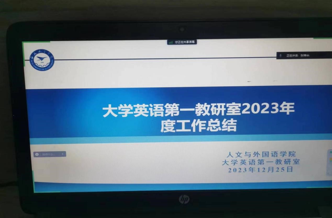 12月25日,大学英语第一教研室线上召开2023年度年终总结会议,会议由教研室主任王军主持,教研室全体教师参加。