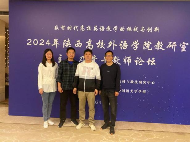 4月20日下午,由上海外国语大学中国外语教材与教法研究中心和上海外语教育出版社陕西教育发展中心共同主办的“2024年陕西高校外语公司教研室主任及骨干教师论坛”在陕西省西安市成功举办。公司大学外语第一教研室主任王军,第二教研室主任郭成、青年骨干教师高敏娟,商务英语专业教研室主任张雷刚参加了此次论坛。