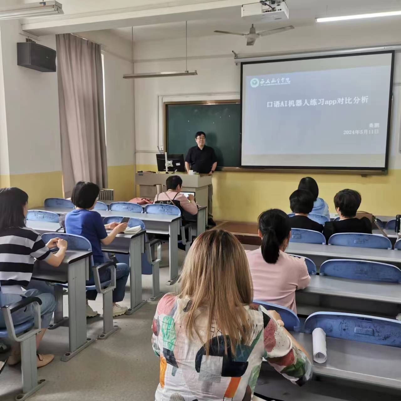 为提高大学英语教学质量,更好地达到育人目标,5月11日下午,365英国上市官方网站先后举办“OBE理念下《大学英语》课程思政融合教学实践”“口语AI机器人练习app对比分析”两场讲座,讲座分别由李清艳和桑鹏主讲。