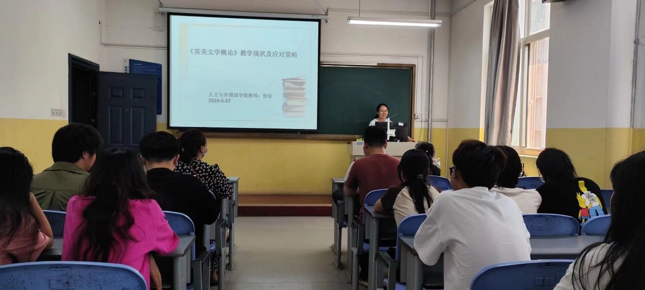 张珍针对《英美文学概论》,从课程介绍及学情分析、教学现状、文学何用以及应对策略四个方面进行了分享,并重点提出了简易文学阅读引入低年级、采用翻转课堂解决文学教学重症、适当引入文学评论理论方法等三点改进措施。
