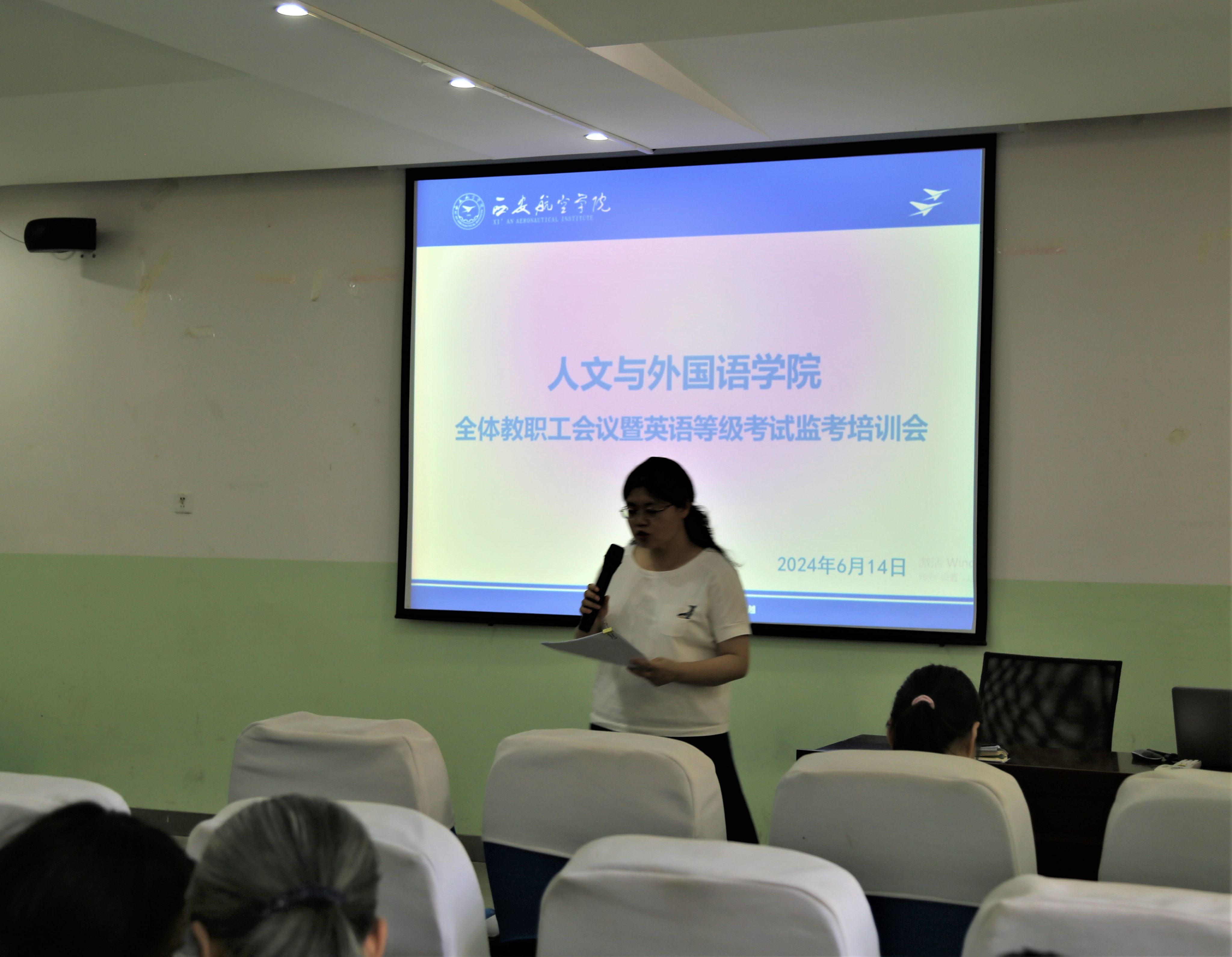 6月15日下午,365英国上市官方网站在南108召开2024年上半年全国大学英语四六级、英语专业八级考务培训会,全体监考老师及考务人员参加,会议由副经理梁春燕主持。