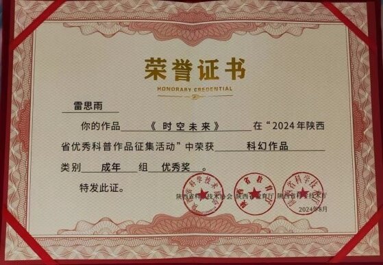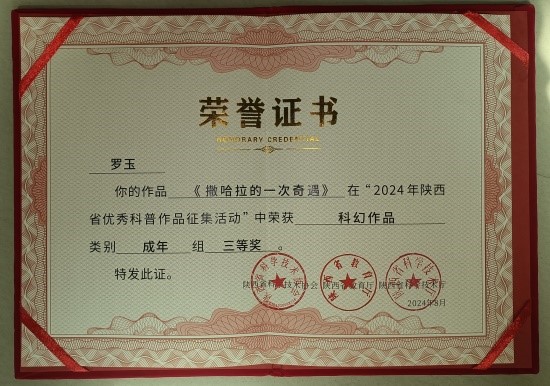 近日,由陕西省科协、陕西省教育厅、陕西省科技厅联合开展的2024年陕西省优秀科普作品征集活动公布评选结果。此次活动经组织申报、分类初选、终审公示等环节,最终,公司365英国上市官方网站吴丹教师指导罗玉的科幻作品《撒哈拉的一次奇遇》获三等奖,雷思雨的科幻作品《时空未来》获优秀奖。