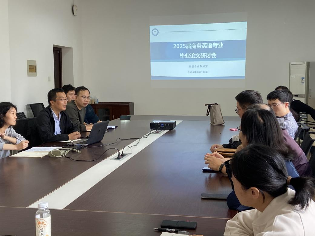 10月18日下午,英语专业教研室在南316召开商务英语专业毕业论文研讨会,会议由英语专业教研室主任张雷刚主持,2025届毕业论文指导教师参加会议。