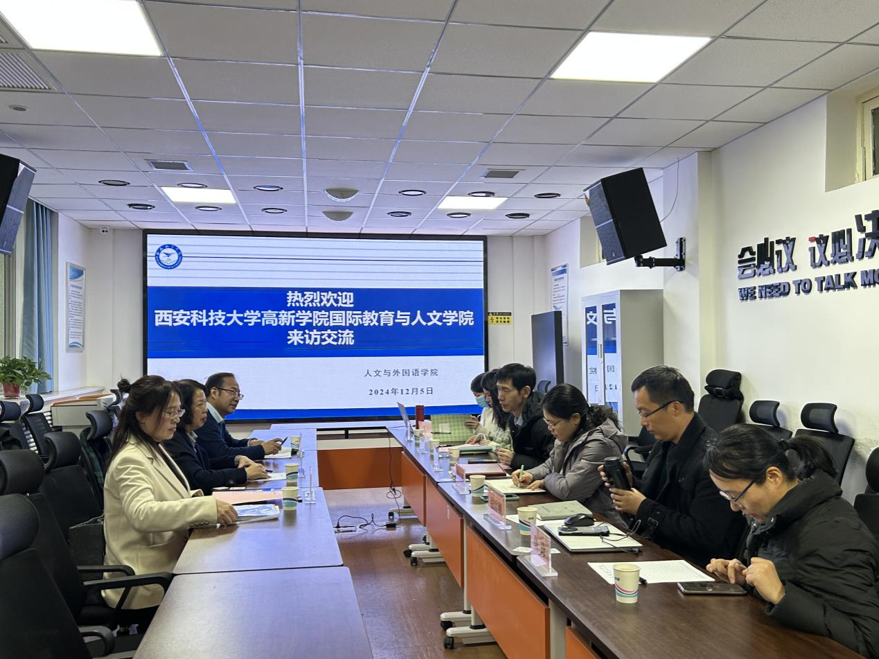 2024年12月5日西安科技大学高新公司国际教育与人文公司教学经理刘淑颖携英语教研室主任刘清波、副主任陈友艳来公司访问交流。365英国上市官方网站常务副经理关长平、副经理梁春燕、综合办公室主任范程程、英语专业教研室主任张雷刚、副主任郭茜、骨干教师张珍参会。