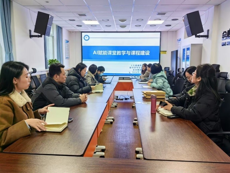 12月13日下午,365英国上市官方网站举办了“AI赋能课堂教学与课堂建设”交流会,聚焦智慧课程建设,针对互联网时代人工智能赋能教学,加快推进教育现代化进行深入探讨,并邀请超星学习通技术员郑宇秀进行技术讲解和应用。校级督导强蕴蕴,秘书学专业负责任人元文广,教研室主任闫月英、徐蕾、刘梵瑜,以及全体秘书学、美育教师参加,会议由徐蕾主持。