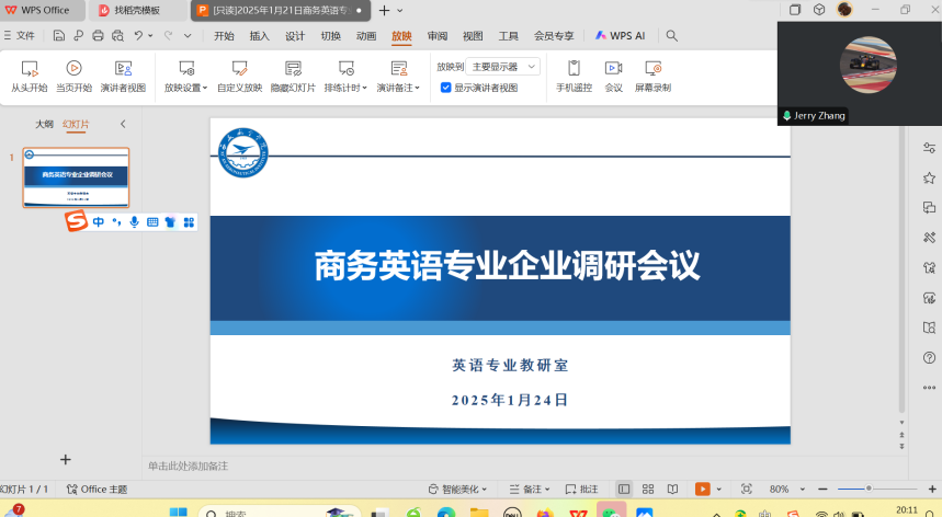 为做好2025版商务英语专业人才培养方案的修订工作,不断推进商务英语专业发展,促进校企育人的融合,2025年1月24日晚,英语教研室主任张雷刚及骨干教师与某瑞典连锁超市驻中国采购处代表张媛开展线上会议进行调研,了解外企对外贸人才素质要求,征求具有20年以上在外企工作的资深入人员对商务英语专业开设课程的意见与建议。