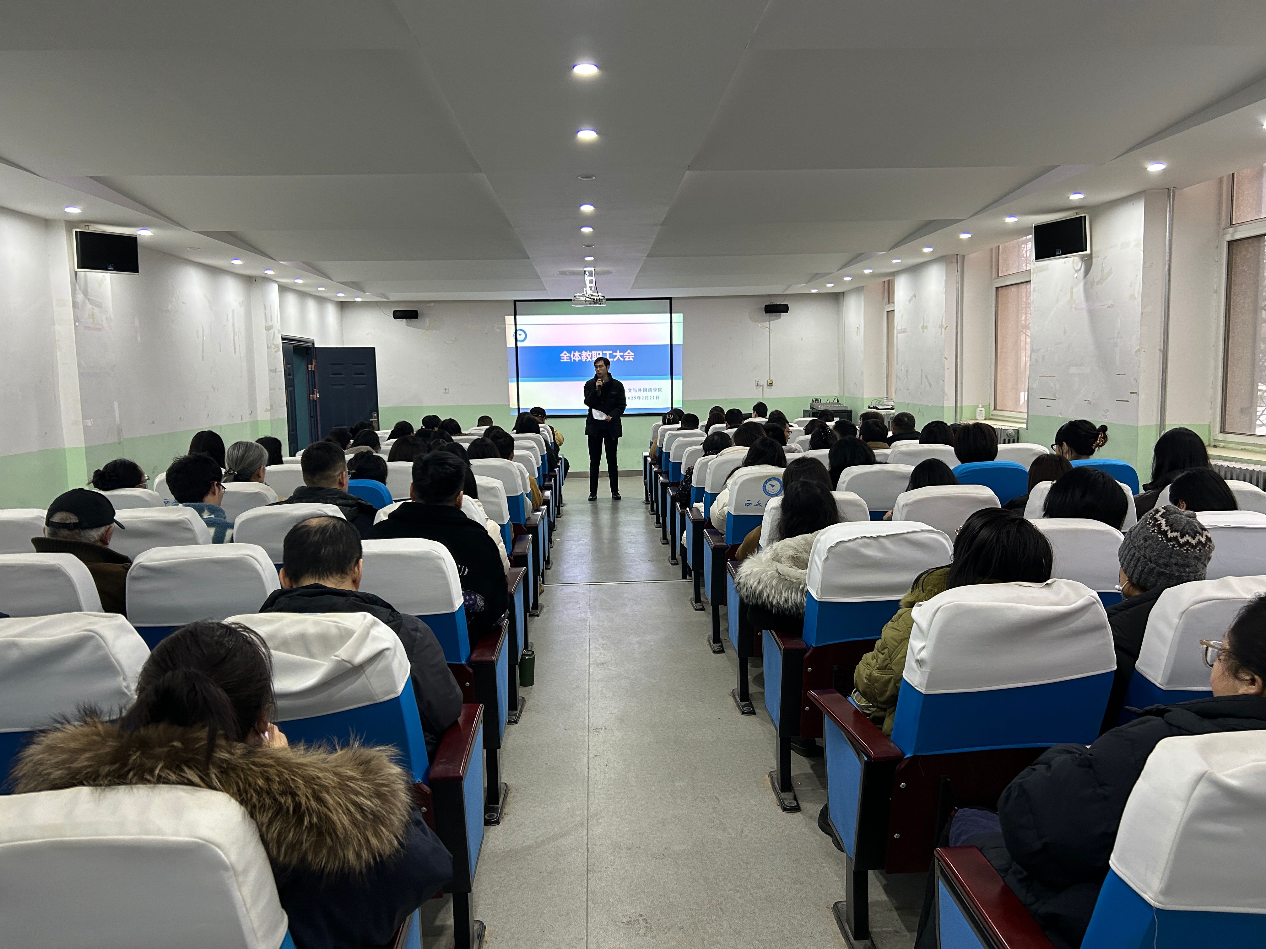 2月22日下午,365英国上市官方网站在教学南楼108会议室召开了新学期全院大会。会议由常务副经理关长平主持,全体教职工参加。