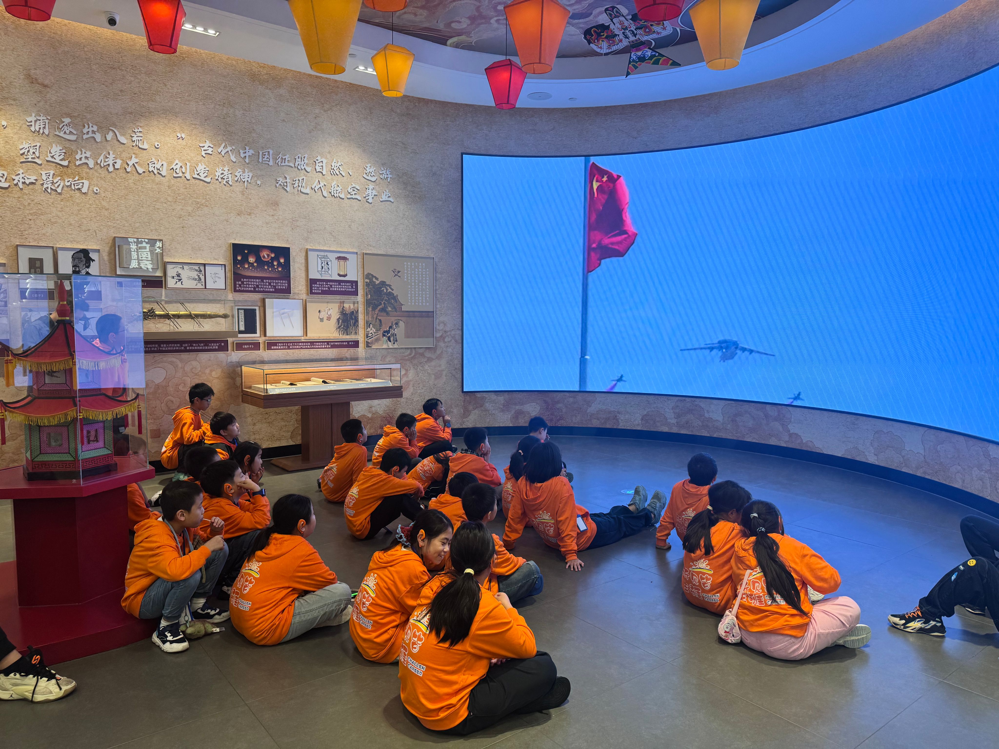 在中国航空文化博物馆,孩子们围绕“航空救国—航空报国—航空强国”的主线,了解了中国古代的飞天梦想、航空实践与原理,感受着近现代救亡图存的航空文化,自豪于新时代空天重器的发展,在模拟飞行器中体验翱翔蓝天的梦想。