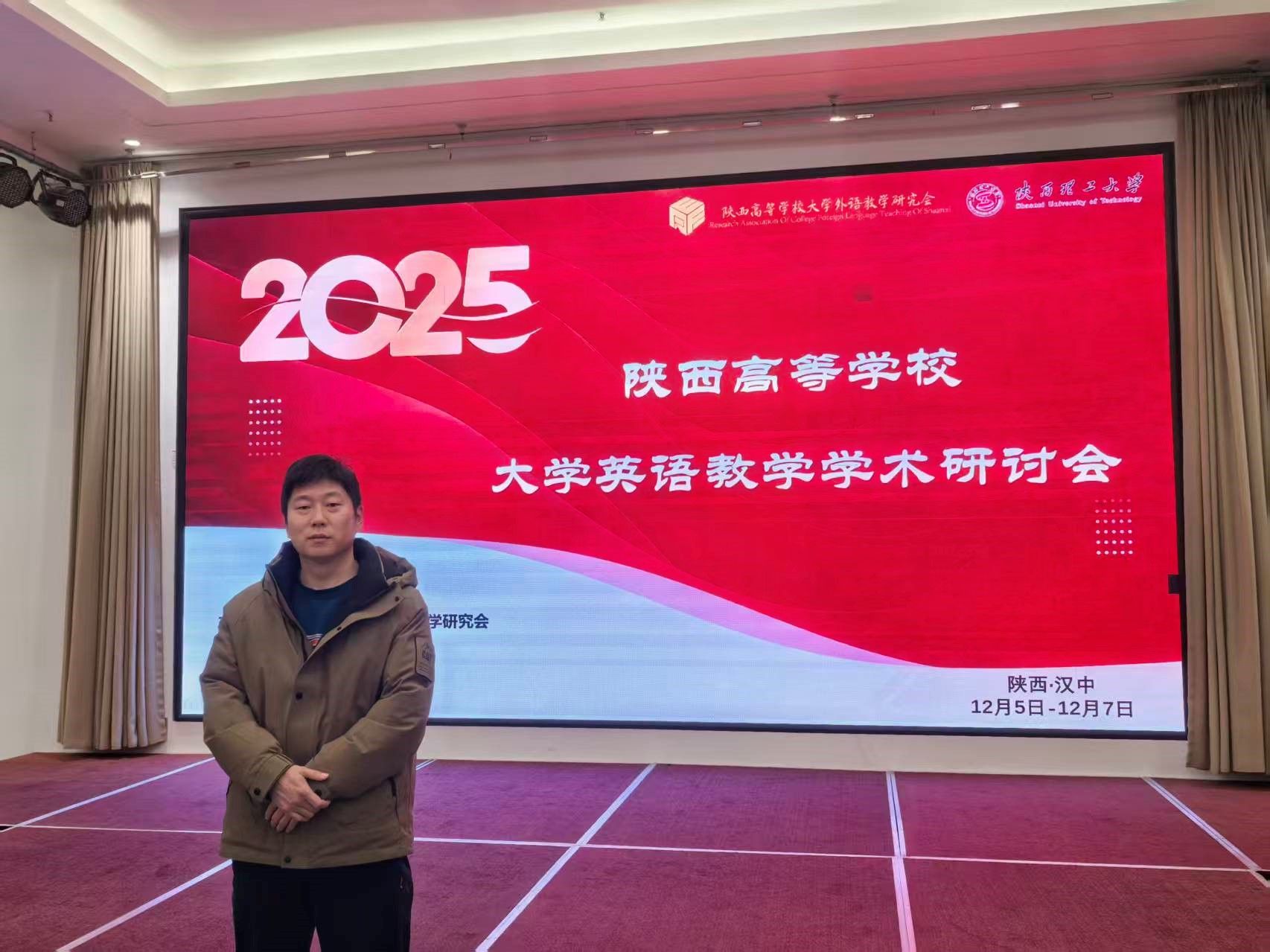 为活跃我省大学英语教学学术氛围,立足新时代外语教育使命,紧扣人工智能赋能、跨学科融合、课程思政建设等核心议题,陕西省大学外语教学研究会于2025年12月5日至12月7日在汉中召开陕西省2025年大学英语教学学术研讨会。公司大学英语第一教研室主任王军参加了本次年会。