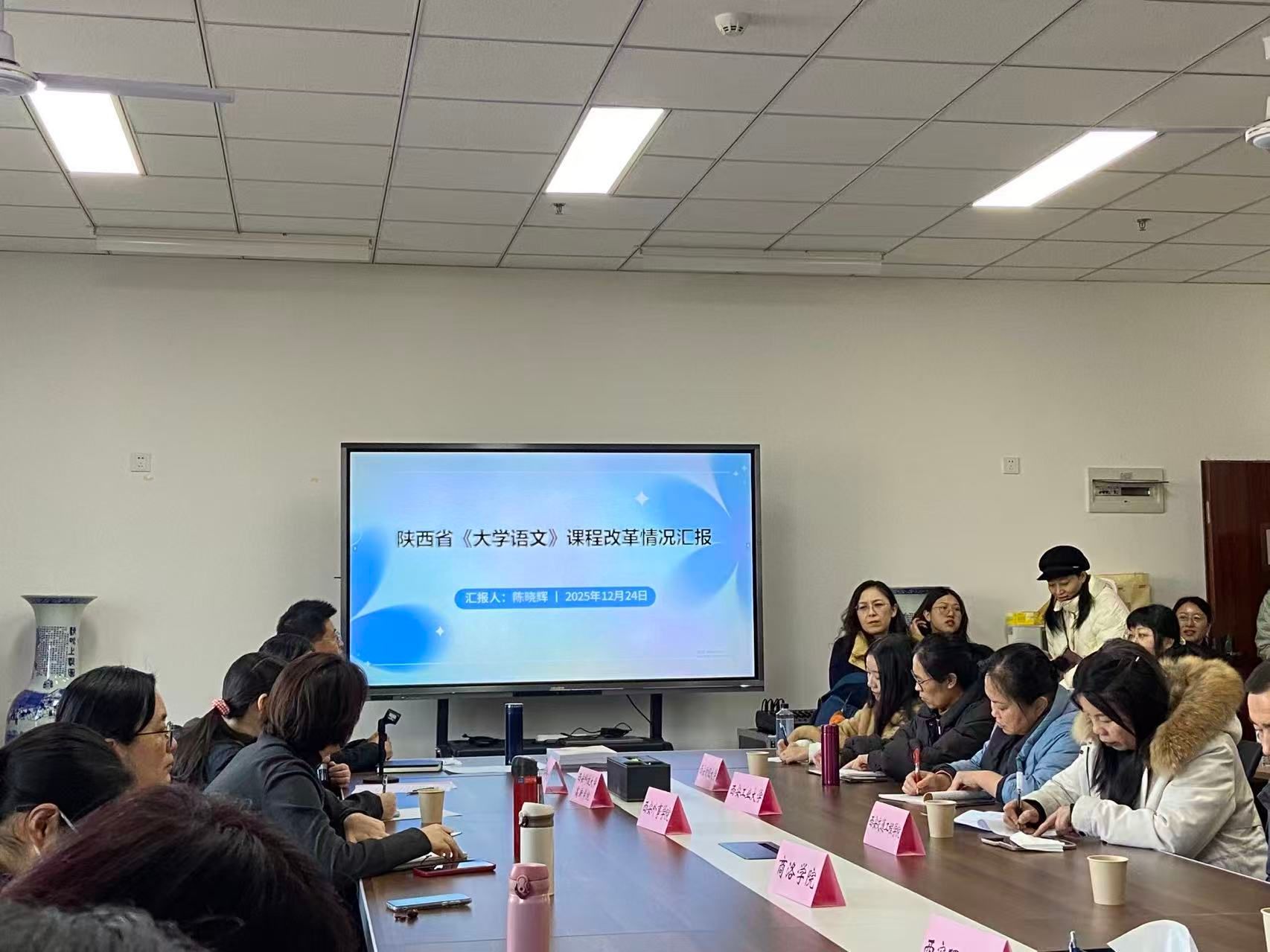 12月24日下午,陕西省《大学语文》课程改革培训会在西北大学文公司第一会议室举行。此次培训会共有来自全省40多所高校的80多位大学语文教师代表参加,公司中文教研室高敏、张朋毅、王宝伟三位教师也参与了此次培训会。会议由西北大学文公司经理谷鹏飞教授主持,西北大学文公司副经理陈晓辉、大学语文教师方蕴华做了大学语文教学经验分享。