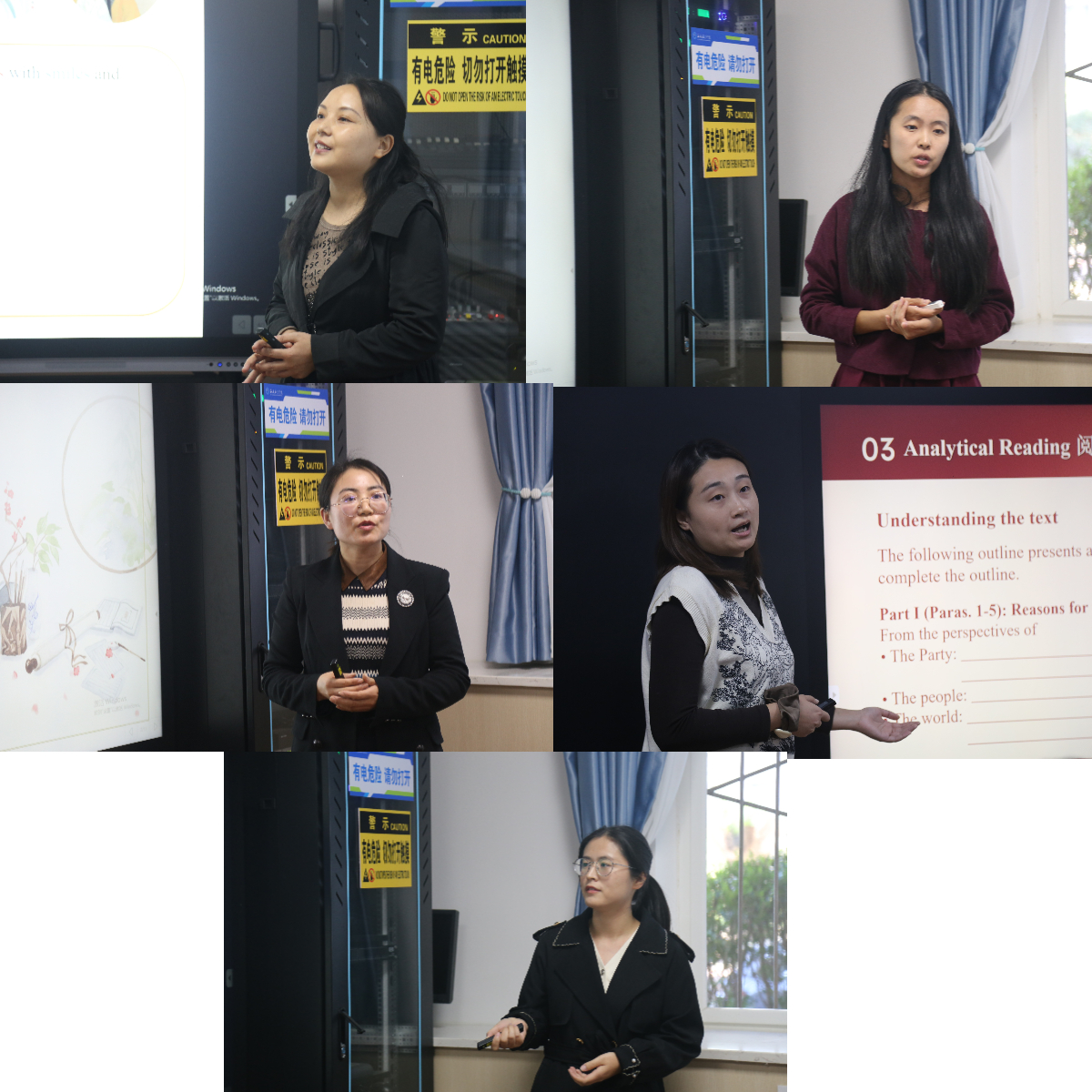 参加比赛的五名教师依据课程特点,利用PPT、短视频等方式从主题选取、课程导入、内容选择、课件设计等方面进行了精心编排,深入挖掘课程蕴含的思想政治教育元素和所承载的思想政治教育功能。参赛教师课堂各具特色,实现“知识传授”和“价值引领”有机统一,展示了各自的教学风采。 激烈角逐,公司将推选张茜楠和徐芳两名教师参加校级决赛。