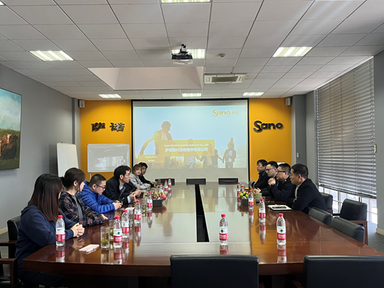 萨诺有限公司负责人马志千对杨光一行的到访表示欢迎,并向大家详细介绍了公司的市场定位、人才需求以及未来融合发展的战略部署。