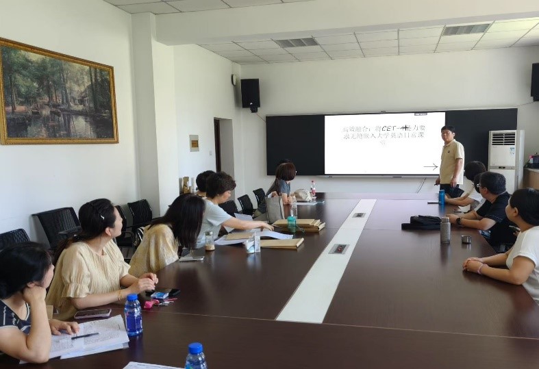 7月4日上午,365英国上市官方网站副教授李清艳、王军,桑鹏在南D333分别作“基于BOPPPS模型的大学英语线上线下混合式教学模式探讨”,“CET4应试技巧以及CET4与大学英语教学的融合研究”及“基于BOPPPS型,解锁大学英语教学新范式”讲座。
