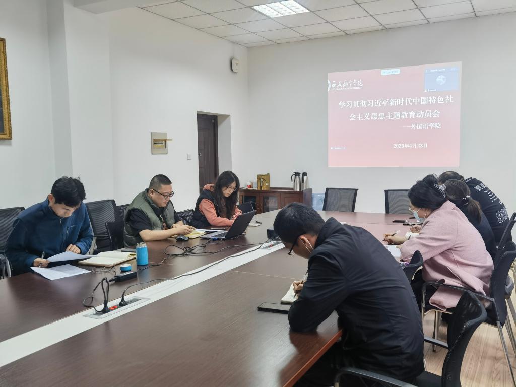 2023年4月23日上午,外国语公司召开学习贯彻习近平新时代中国特色社会主义思想主题教育动员会,公司科级以上干部、各支部书记、教学秘书及师生代表参加,会议由曹远、关长平主持。
