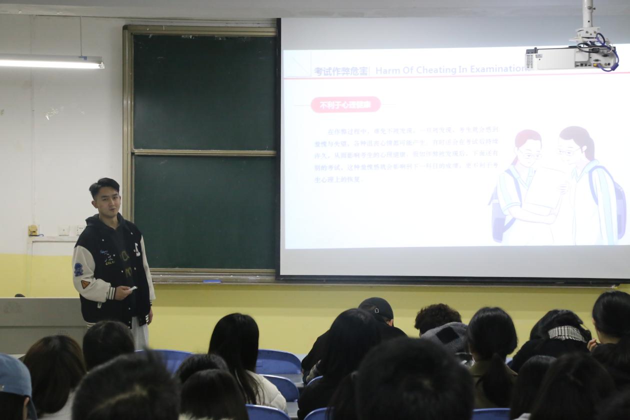 在动员会上,徐夕然强调了关于考试纪律制度和违纪作弊的严重性,要求同学们在认真复习,严格要求自己,坚守诚信底线。针对即将到来的期末考试,希望同学们要端正态度,严格遵守考试规章制度,杜绝一切考试作弊行为,以诚信的态度对待每一场考试,考出真实水平。