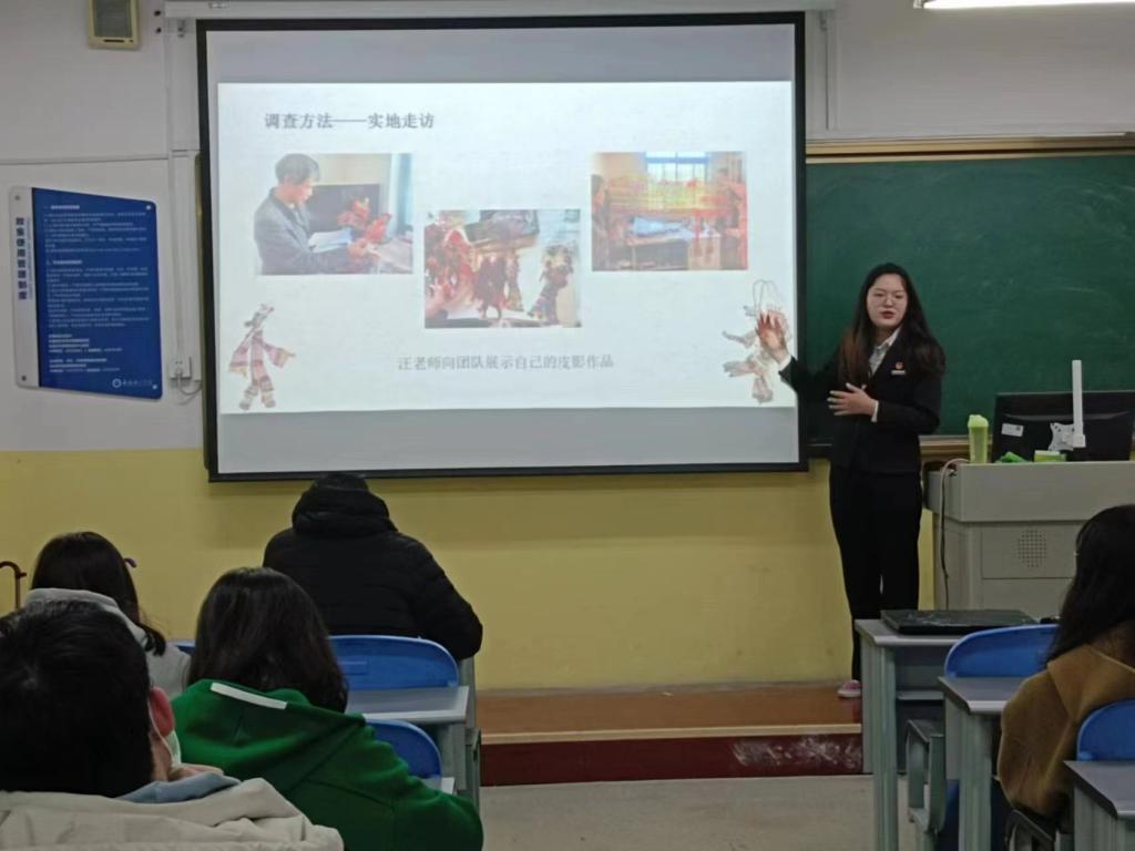 本次路演的项目组“灯影下的艺术”为2022年立项的国家级项目。路演结合ppt、音频、视频资料,从项目的背景、内容、成果、成员收获等方面进行展示。