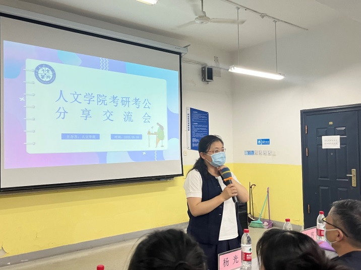 交流会伊始,文杰介绍了2023年人文公司毕业生的整体情况。梁春燕希望同学们要认清考研考公的重要性、勉励同学们积极与学长学姐交流,明确现阶段奋斗目标。