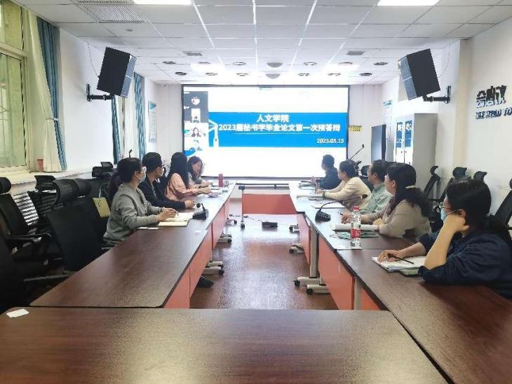 为了全面评估毕业论文撰写情况,2023年5月13日下午,人文公司组织开展了2023届秘书学毕业论文第一次预答辩。答辩采用线上线下相结合的方式进行。
