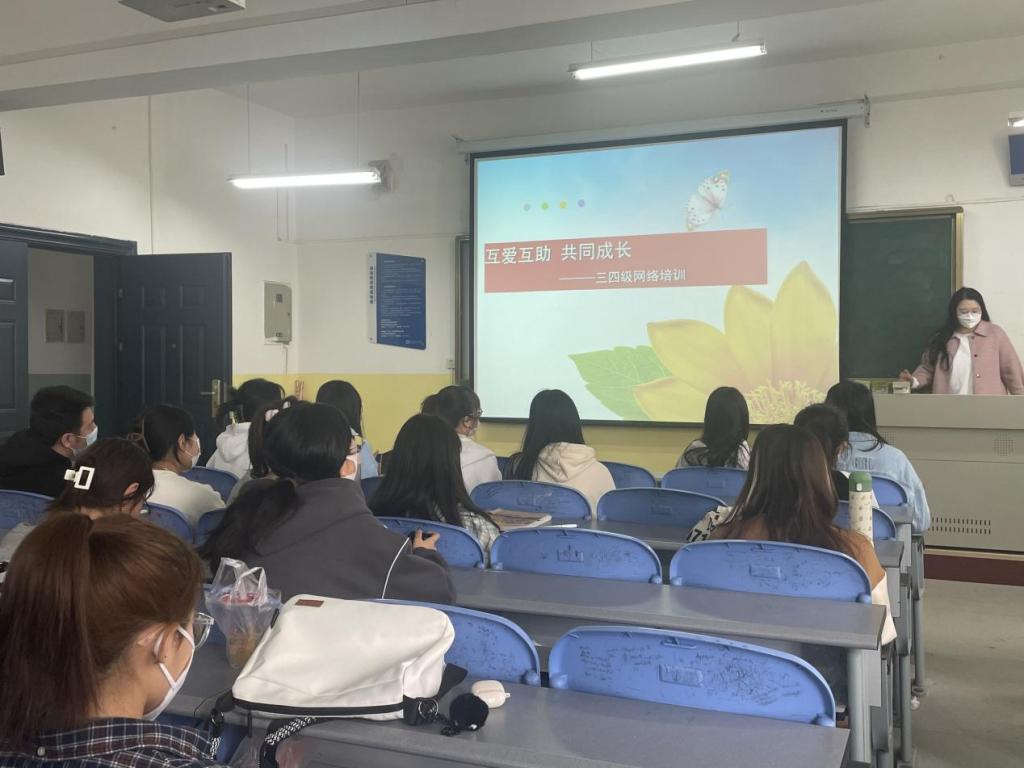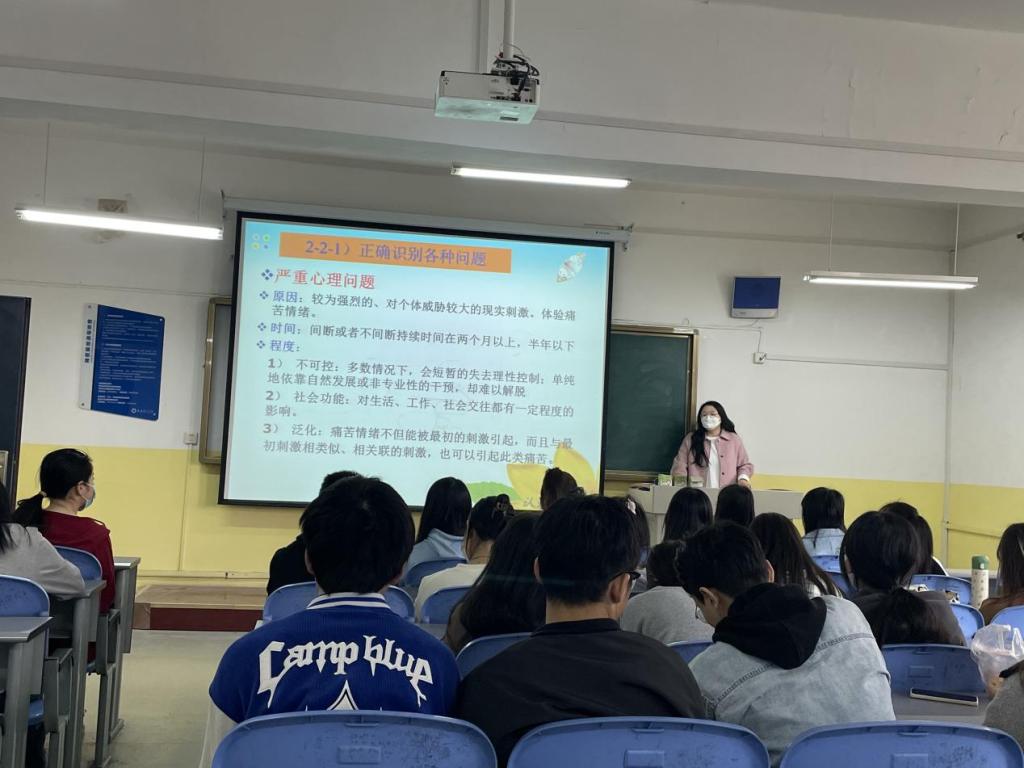 主讲老师辅导员杨秦钰着重讲了三点。其一介绍了心理联络员存在的意义;其二,介绍了三四级心理健康护航员的职责;其三,介绍了区分正常和异常心理的三原则,同时对于一些心理健康问题的处理给出了一些处理方法。