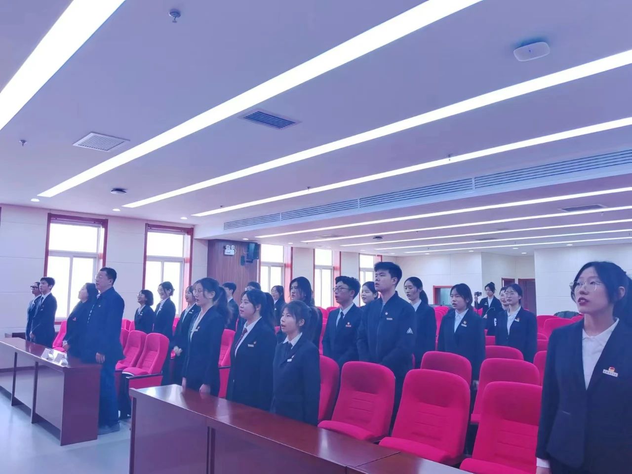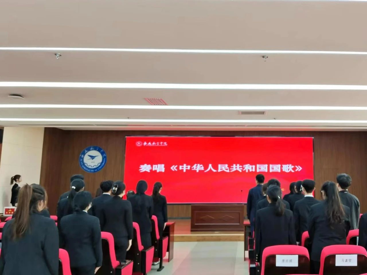 大会开始,全体成员起立奏唱国歌。