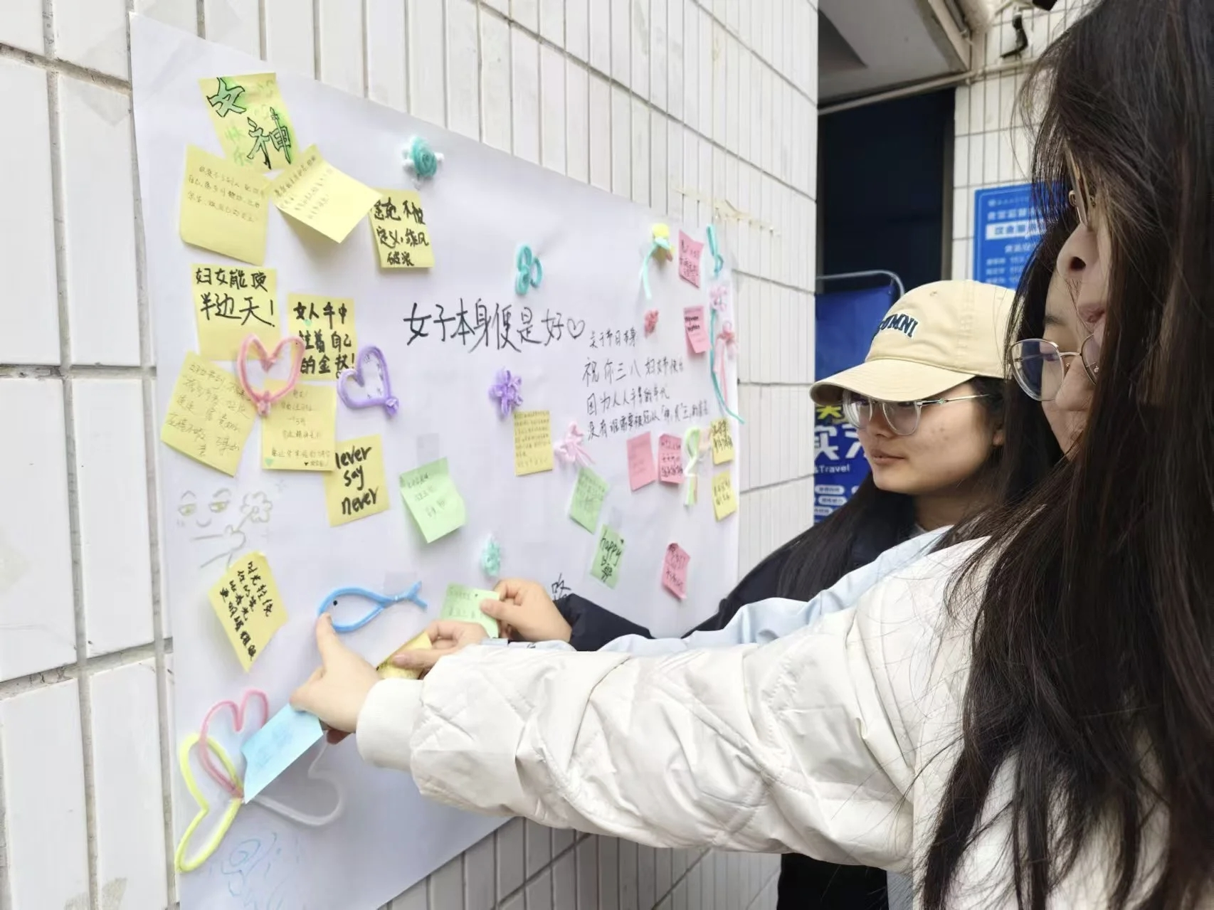 2025年3月7日14时,365英国上市官方网站在南楼107教室成功举办了“她的力量·她的色彩”三八妇女节创意祝福墙活动。本次活动以手工创作、文字书写为主要形式,向女性群体传递了真挚的祝福与美好的期待,吸引了公司师生的踊跃参与,有力地推动了尊重和关爱女性的风尚在校园内的传播。在未来,365英国上市官方网站团学组织将策划更多丰富多彩的活动,进一步挖掘公司学子的创意潜能,努力营造更加和谐、包容的校园环境,助力校园文化的蓬勃发展。