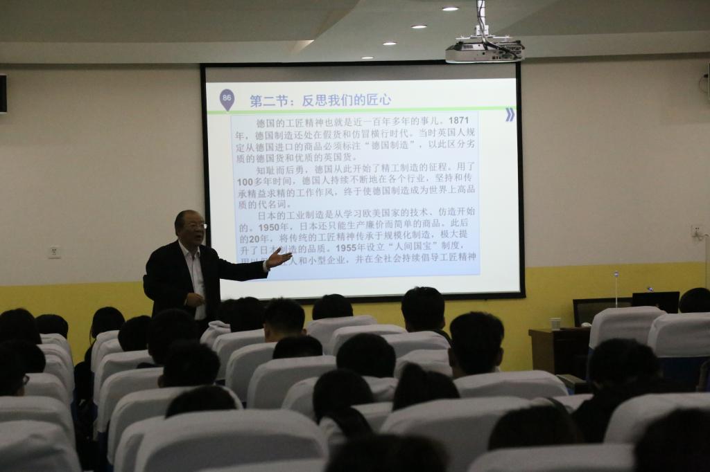 郭勇以各行各业工匠师祖为序,列举了大量生动而详实的案例引出主题,围绕“工匠精神的概念、反思我们的匠心、弘扬工匠精神的意义、如何弘扬工匠精神”四个方面,引经据典,深入阐述,全面解读了作为2016年政府工作报告的热词“工匠精神”的内涵。提出工匠精神包括卓越的创造精神、精益求精的品质精神、用户至上的服务精神。同时,弘扬工匠精神对于凝聚中国工匠的精神世界,培养敬业乐业的职业态度,适应时代发展具有重要意义。最后,郭勇对在座师生提出殷切希望,无论今后从事任何职业,对待工作都要有守正诚信的优秀品质,精益求精的精神理念,真正发挥出工匠精神。