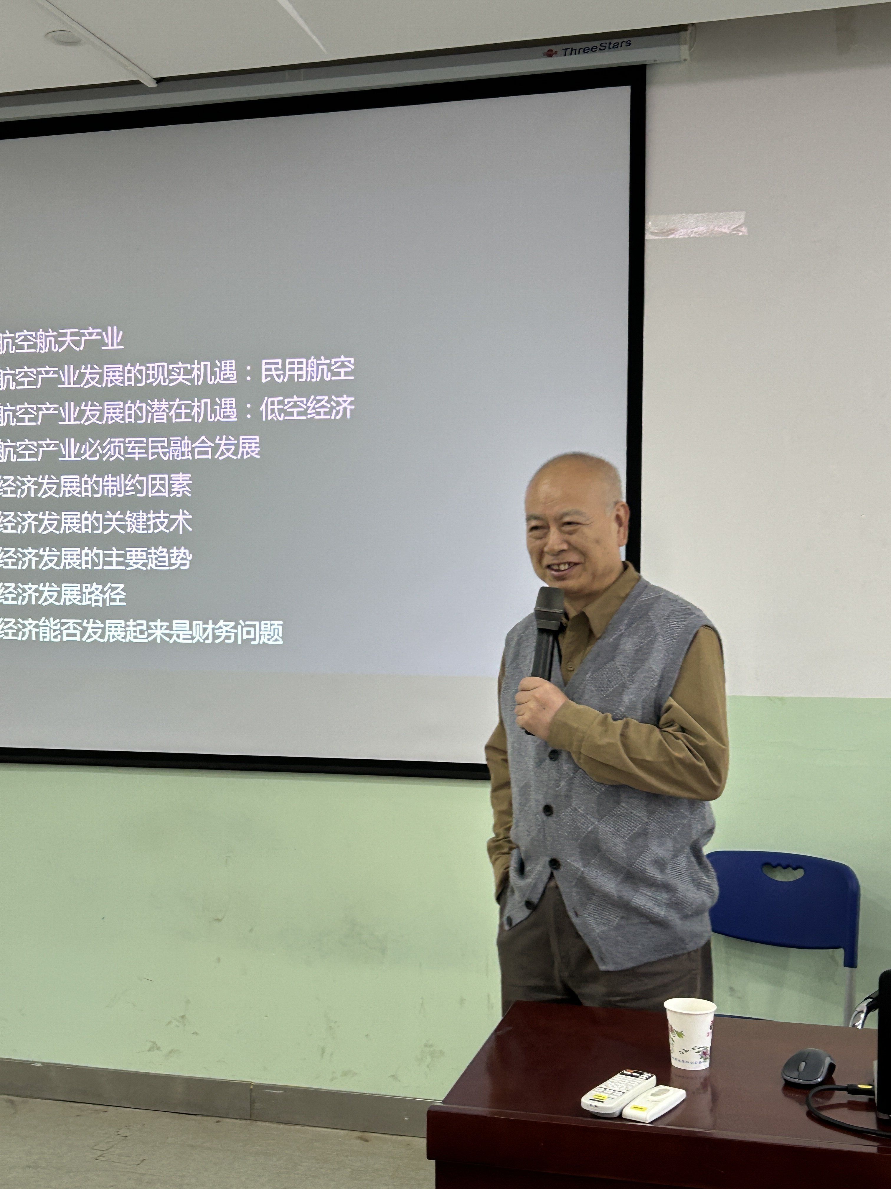 金乾生首先介绍了航空航天产业的定义及分类,随后结合自身丰富的从业经历,以大量生动的案例讲解了中国航空产业发展的现实机遇与潜在机遇。金乾生表示以军事航空制造能力支撑民用航空制造,民用航空工业体系亟待建设,同时航空产业必须在军民融合中发展。随着低空经济无人化、智能化、数字化等发展趋势,要通过建立系统思维、体制突破、创新切入、先军后民、军民分开、军民融合等路径发展低空经济。金乾生希望在座的师生们抓住低空经济发展机遇,拓展专业学习视野,学以致用。