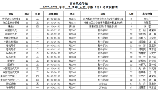 2020-2021-2人文公司期末考试安排表