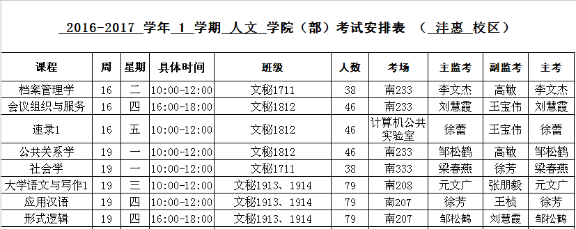 人文公司2016-2017-1期末考试安排