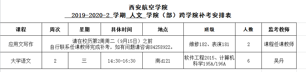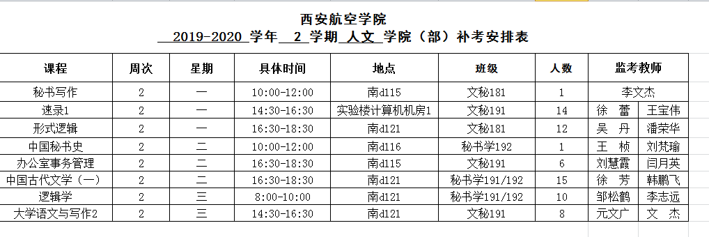 2019-2020-2人文公司补考安排表